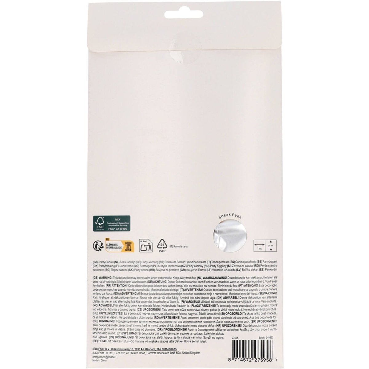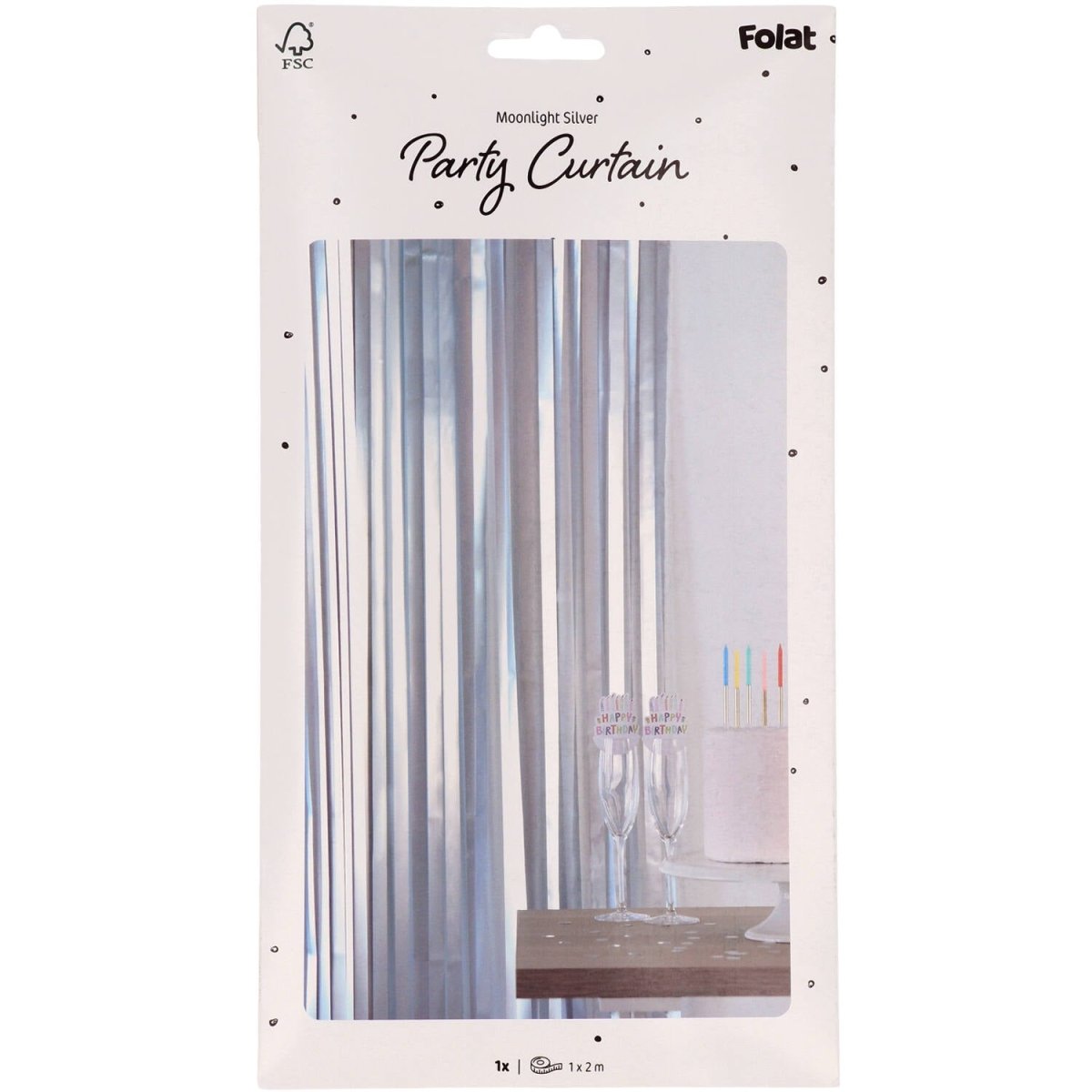 För en glittrande fest. Partygardin - Matt Silver - 1 x 2 m. Innehåll: 1 partygardin. Används t.ex. vid följande fest/festtillfällen: Födelsedag, Temafest. En elegant festridå med breda silverremsor som är 2,5 cm breda. Fin som dörrdraperi, men också mycket lämplig som bakgrund för vackra foton. Tack vare den praktiska självhäftande kanten är denna festridå lätt att hänga upp. Denna artikel är tillverkad av folie.