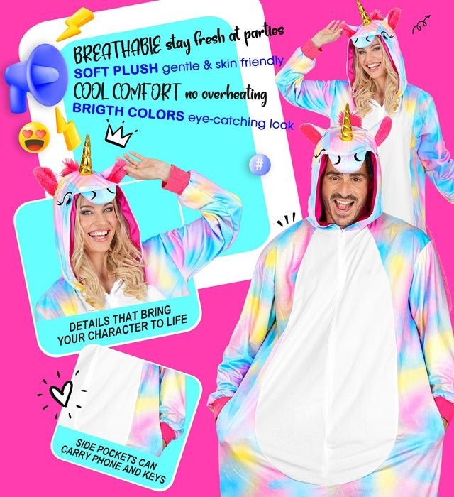 Denna enhörningsdräkt med huva är en komplett dräkt för maskerad eller cosplay.