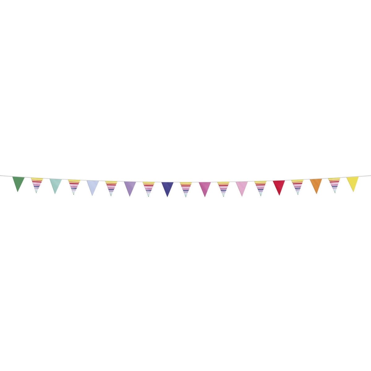 Ingen fest kan vara utan. Flagglina - Stripetastic - 10 m. Innehåll: 1 flagglina. Används t.ex. under följande fest/festtillfällen: Födelsedag, Temafest, Festival. En färgglad flagglina med praktiskt förvaringssystem. Växla mellan färgade flaggor och flaggor med färgade horisontella ränder. En flagga mäter 21 x 30 cm. Det finns 19 flaggor på det 10 meter långa vita bandet. Det är 11 cm mellanrum mellan flaggorna och 2 meter i båda ändar för upphängning. Den sista flaggan (22 x 32 cm) har även funktionen av en påse där de andra flaggorna kan vikas. Detta gör det mycket enkelt att förvara, behålla och återanvända denna flagglinje. Denna artikel är tillverkad av plast.