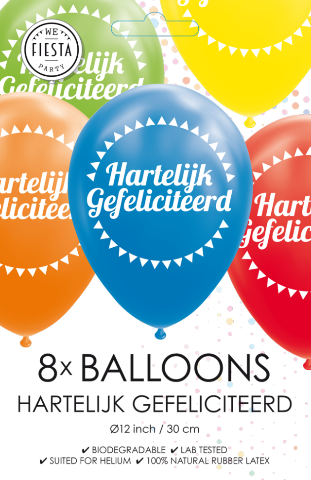 Färgade ballonger Happy Birthday 30,5cm 8st