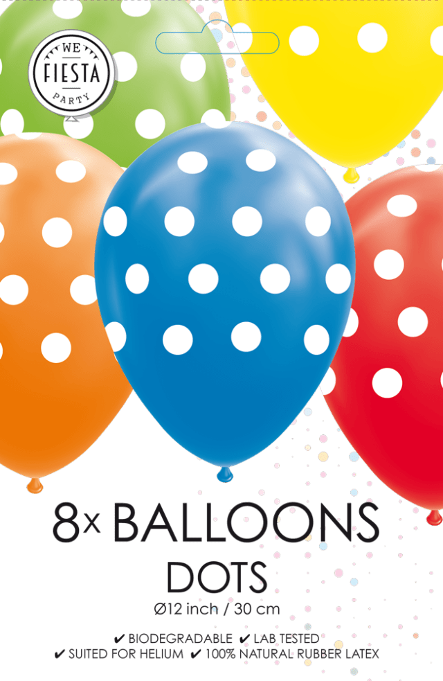 Färgade ballonger Prickar 30,5cm 8st