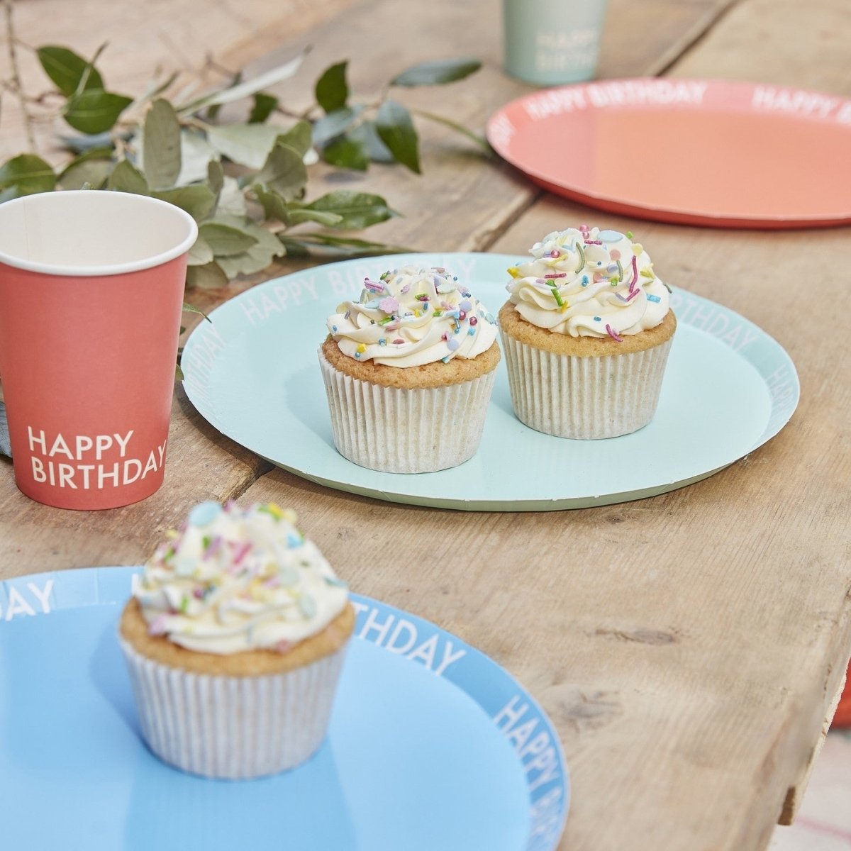Färgade Happy Birthday-tallrikar Papper 25cm 8st