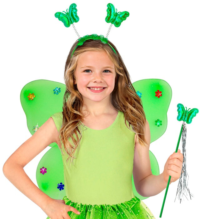 Låt barnen förvandla sig till en förtrollande fjäril med detta kompletta gröna set, perfekt för maskerad, temafester eller fantasifulla rollspel.