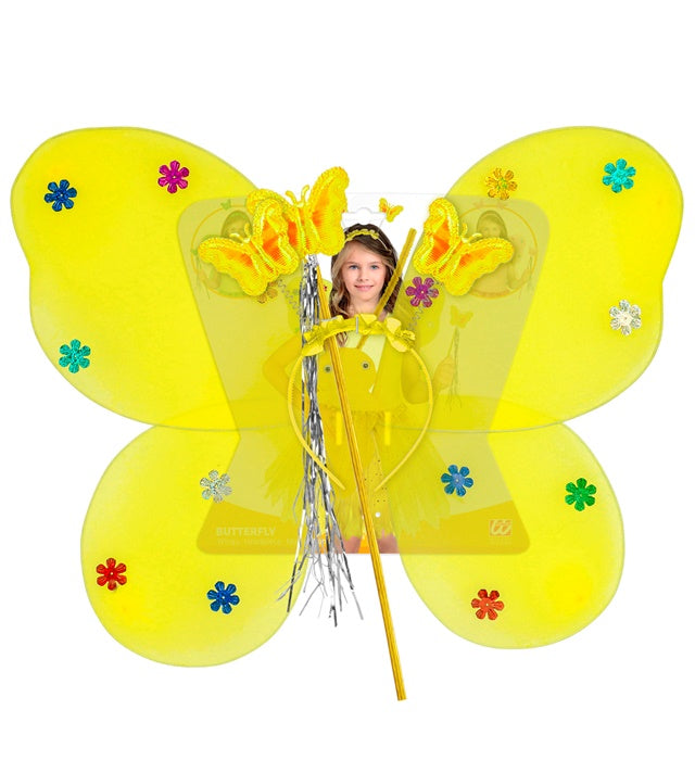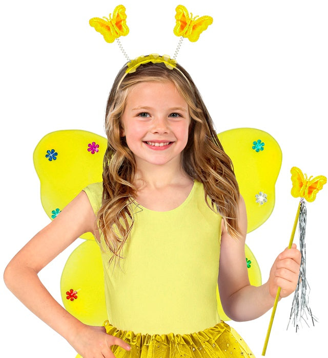 Låt barnen förvandla sig till en förtrollande fjäril med detta kompletta gula set, perfekt för maskerad, temafester eller fantasifulla rollspel.