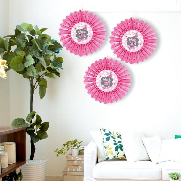 Födelse Pappersfläkt Flicka It's A Girl 30 cm