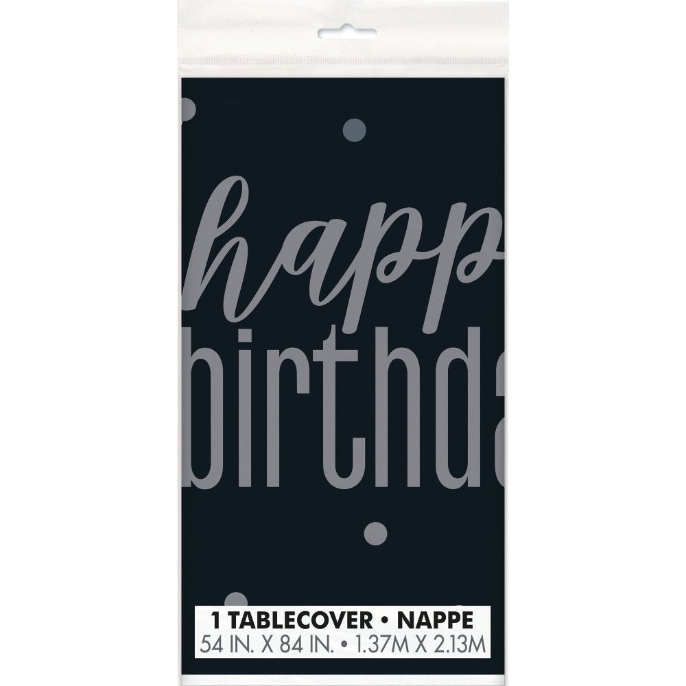 Födelsedagsduk Happy Birthday Svart 2,13m