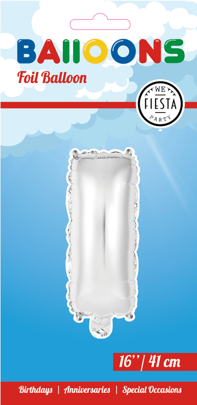 Folieballong Bokstav I Silver 41cm med sugrör