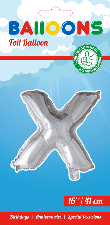Folieballong Letter x Silver 41cm med sugrör