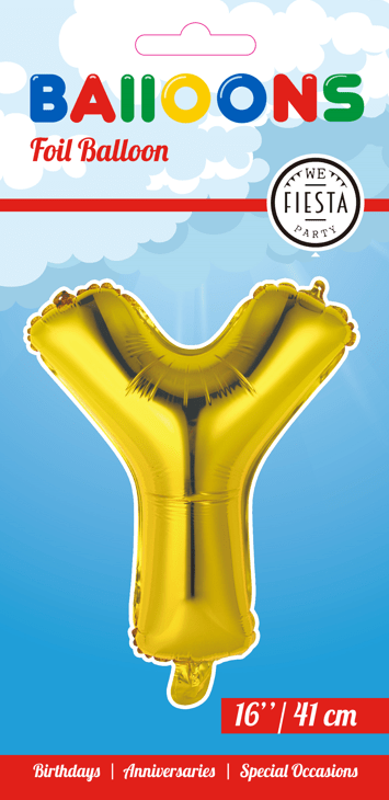 Folieballong Bokstav Y Guld 41cm med sugrör