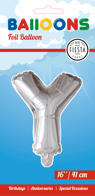 Folieballong Bokstav Y Silver 41cm med sugrör