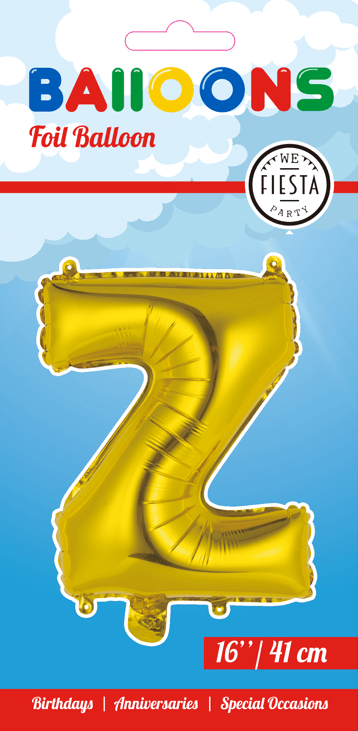 Folieballong Bokstav Z Guld 41cm med sugrör