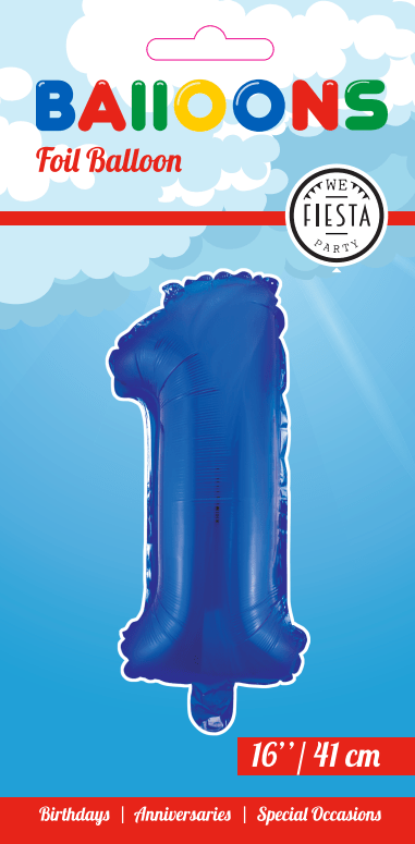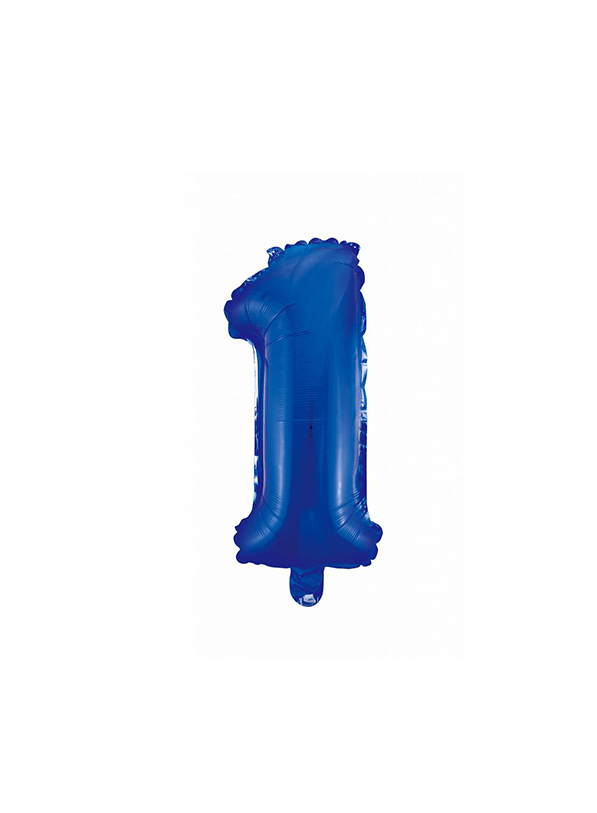 Folieballong Figur 1 Blå 41cm med sugrör