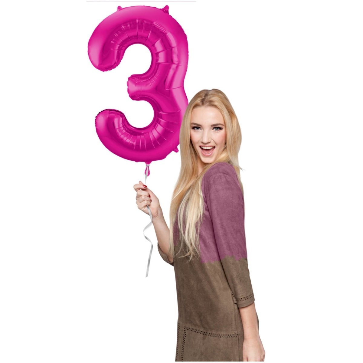 Folieballong Figur 3 Fuchsia Metallic XL 86cm tom