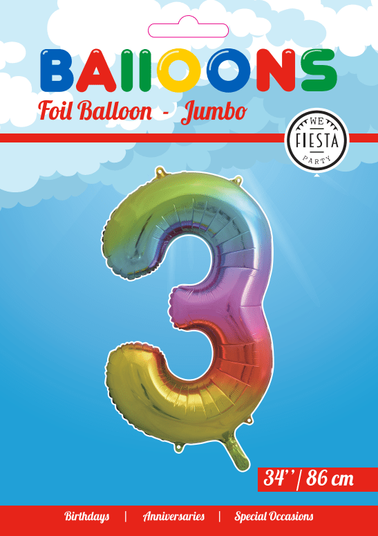 Folieballong Figur 3 Regnbåge XL 86cm tom