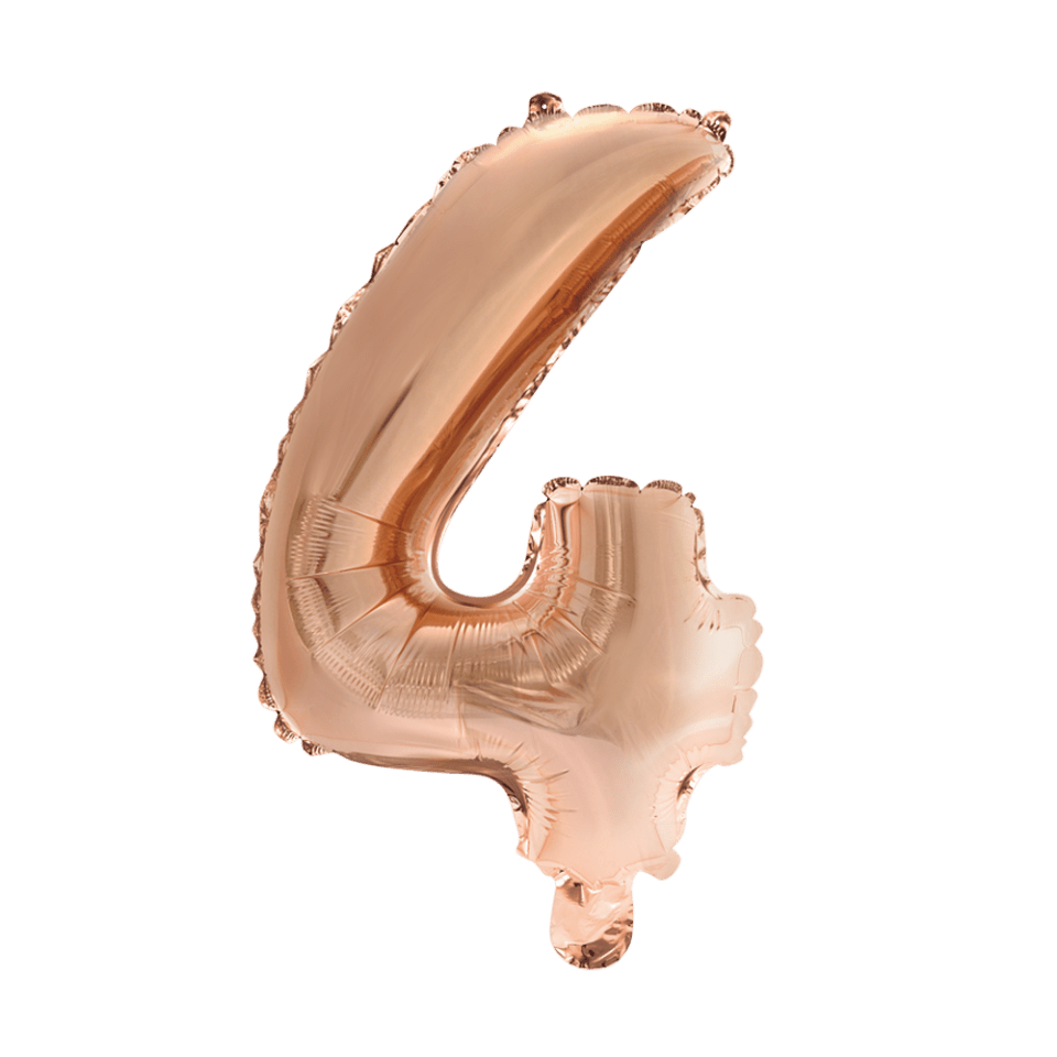 Folieballong Figur 4 Rose Gold 41cm med sugrör