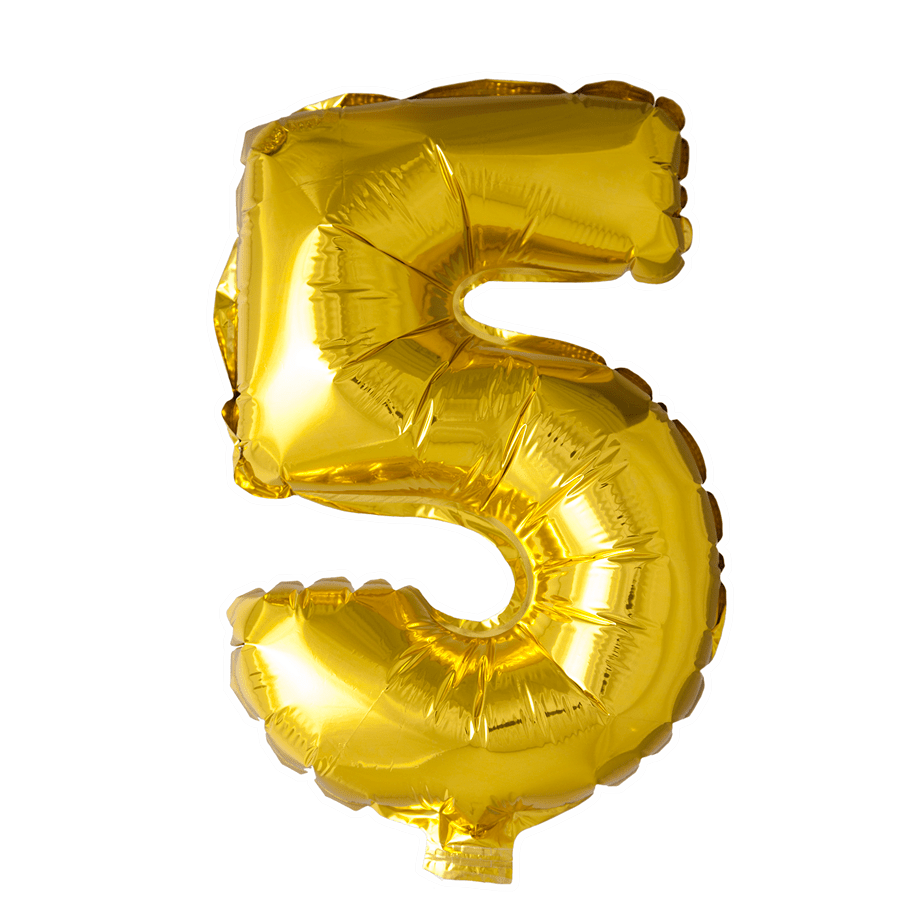 Folieballong Figur 5 Guld 41cm med sugrör