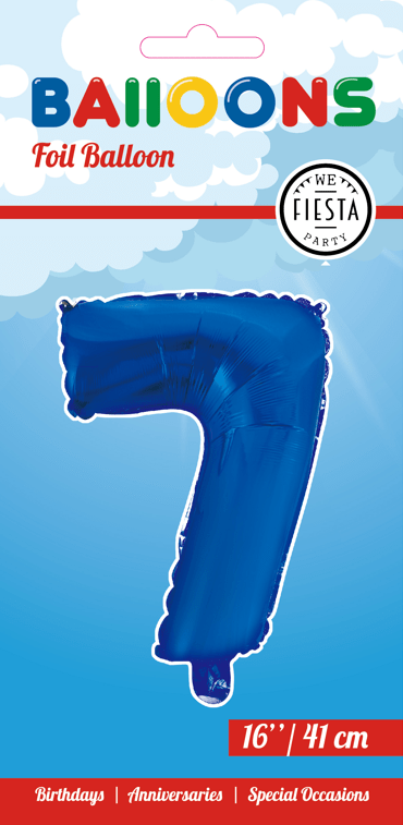 Förpackningsinnehåll:Folieballong Figur 7 Blå 41cm med sugrör