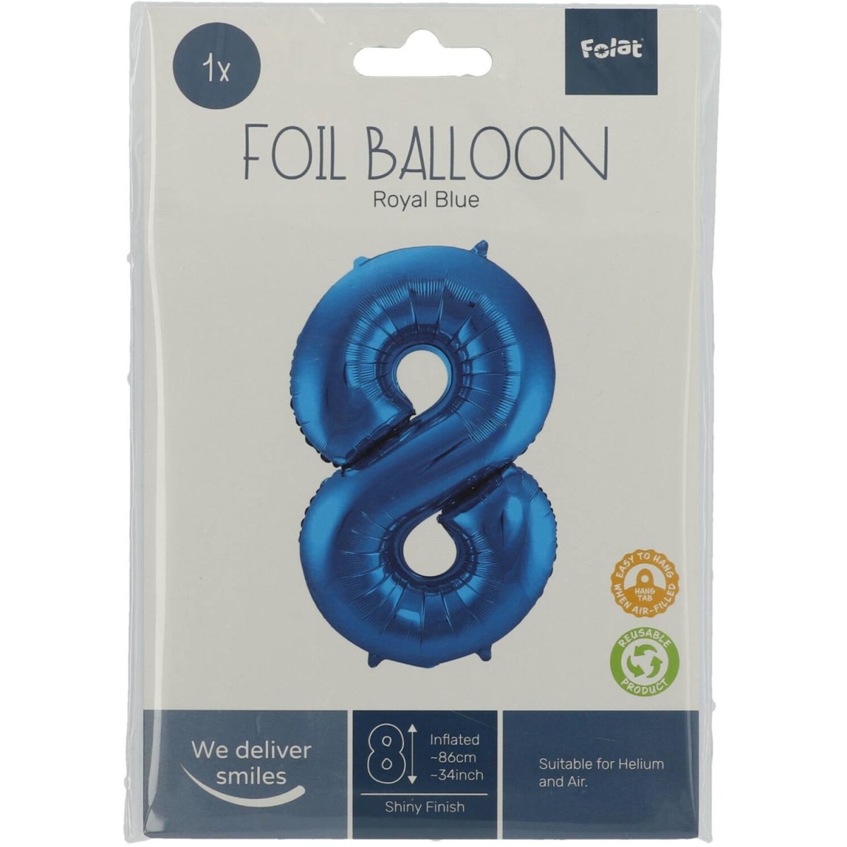 Blue Foil Balloon Number 8 - 86cm. Innehåll: 1 folieballong. Färg: Blå. Kan t.ex. användas under följande fest/festtillfällen: Födelsedag, Jubileum och Barnkalas. Denna folieballong är 34 tum/86 cm. Artikeln är tillverkad av folie.