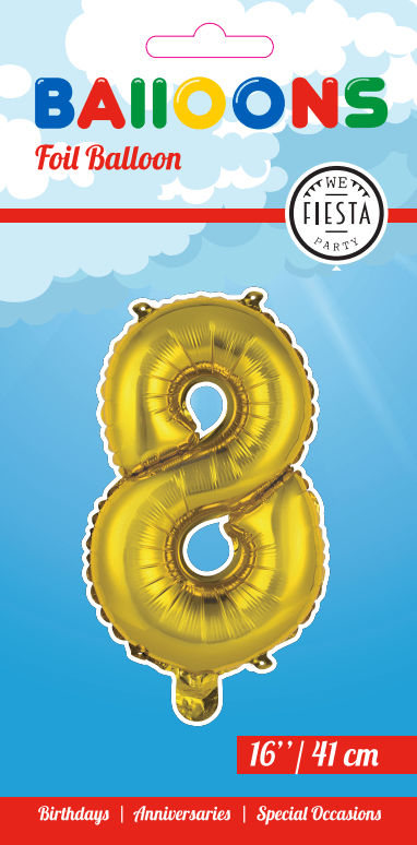 Folieballong Figur 8 Guld 41cm med sugrör