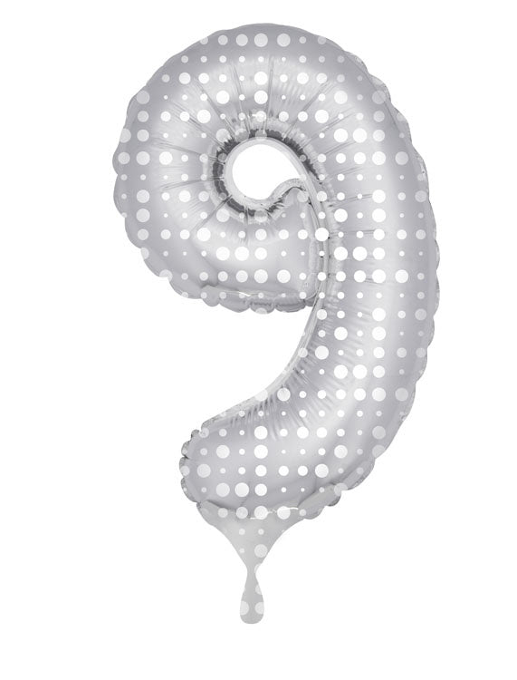 Folieballong Figur 9 Silverprickar XL 86cm tom