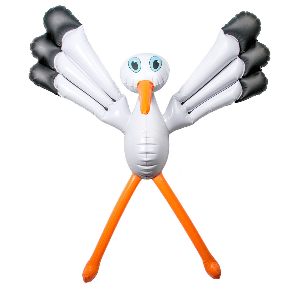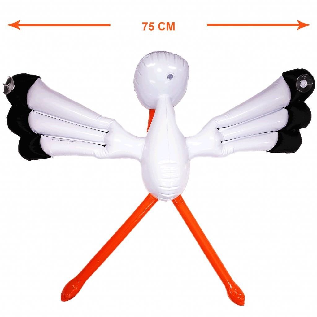 Fira födelsen av en ny son eller dotter med denna söta uppblåsbara stork. Innehåll: 1 uppblåsbar artikel. Storken fästs enkelt på fönstret med sugkopparna och har 2 fönsterdekorationer för en pojke och en flicka. Den här uppblåsbara storken är 75 cm. Artikeln är tillverkad av plast.