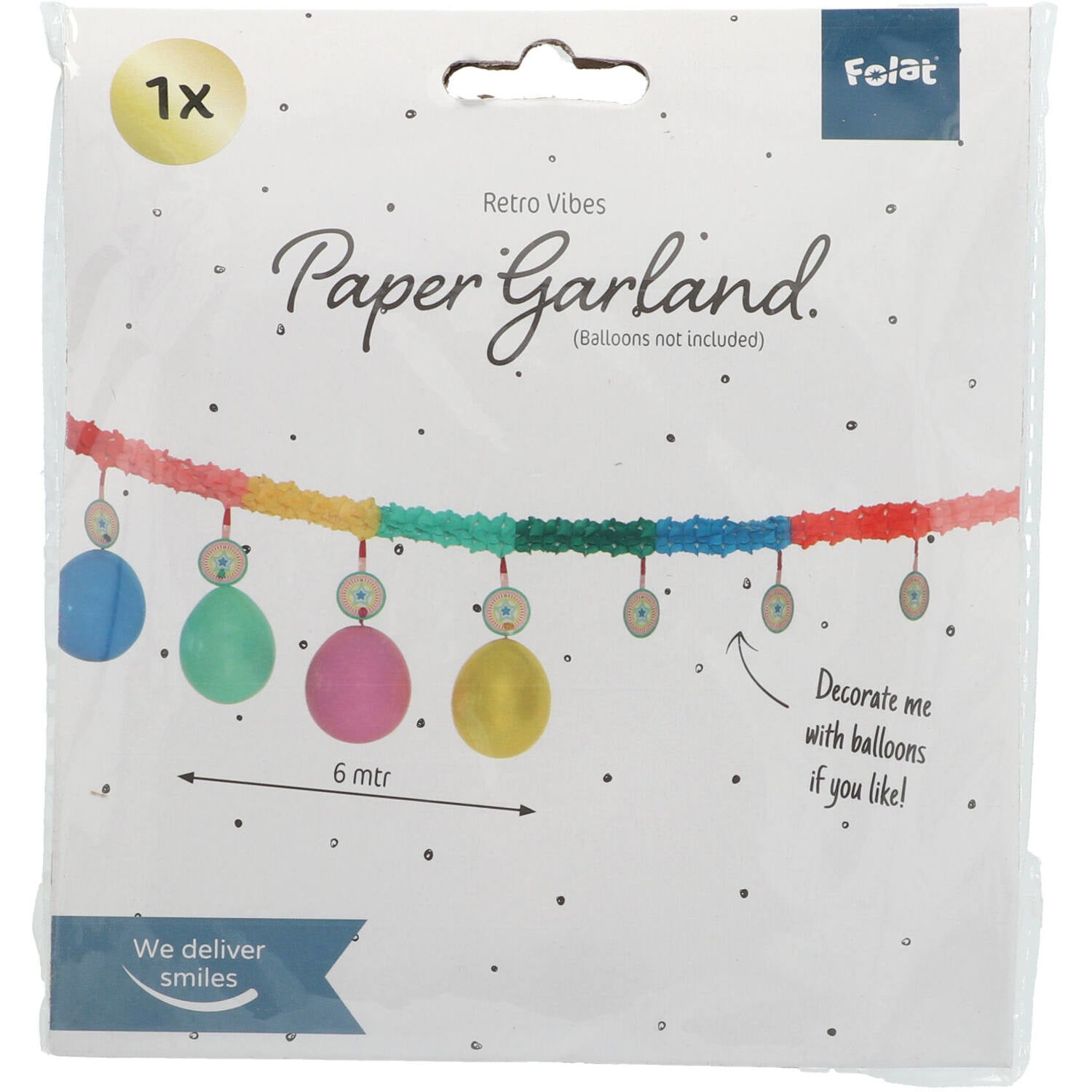 Slinga med hängen Retro - 6 meter. Innehåll: 1 girland. Färg: Flerfärgad. Ballonger ingår ej. Används t.ex. vid följande kalas/festtillfällen: Födelsedag, Barnkalas och Jubileum. Denna girlang är 6 meter lång. Artikeln är tillverkad av papper.