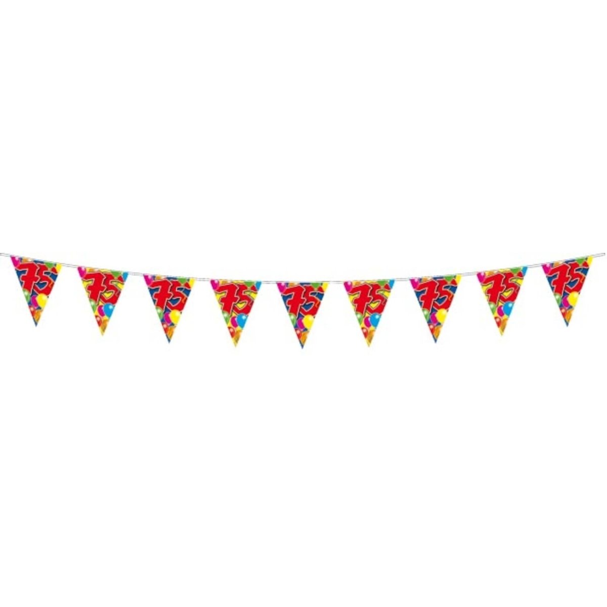 75 år Slingballonger - 10 meter. Innehåll: 1 flagglina. Färg: Flerfärgad. Produkttema: Ballonger. Kan t.ex. användas under följande fest/festtillfällen: födelsedag. Denna girlang är 10 meter lång. Artikeln är tillverkad av plast.