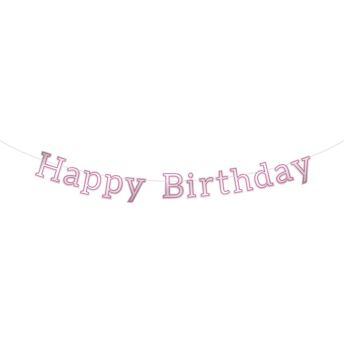 Brevgirlang Glossy Pink 'Happy Birthday' - 3 meter. Innehåll: 1 bokstavskrans. Färg: Silver. Används t.ex. vid följande fest/festtillfällen: Födelsedag, Barnkalas och Tonårskalas. Denna bokstavsgirlang är ca 3 meter lång. Artikeln är tillverkad av papper.