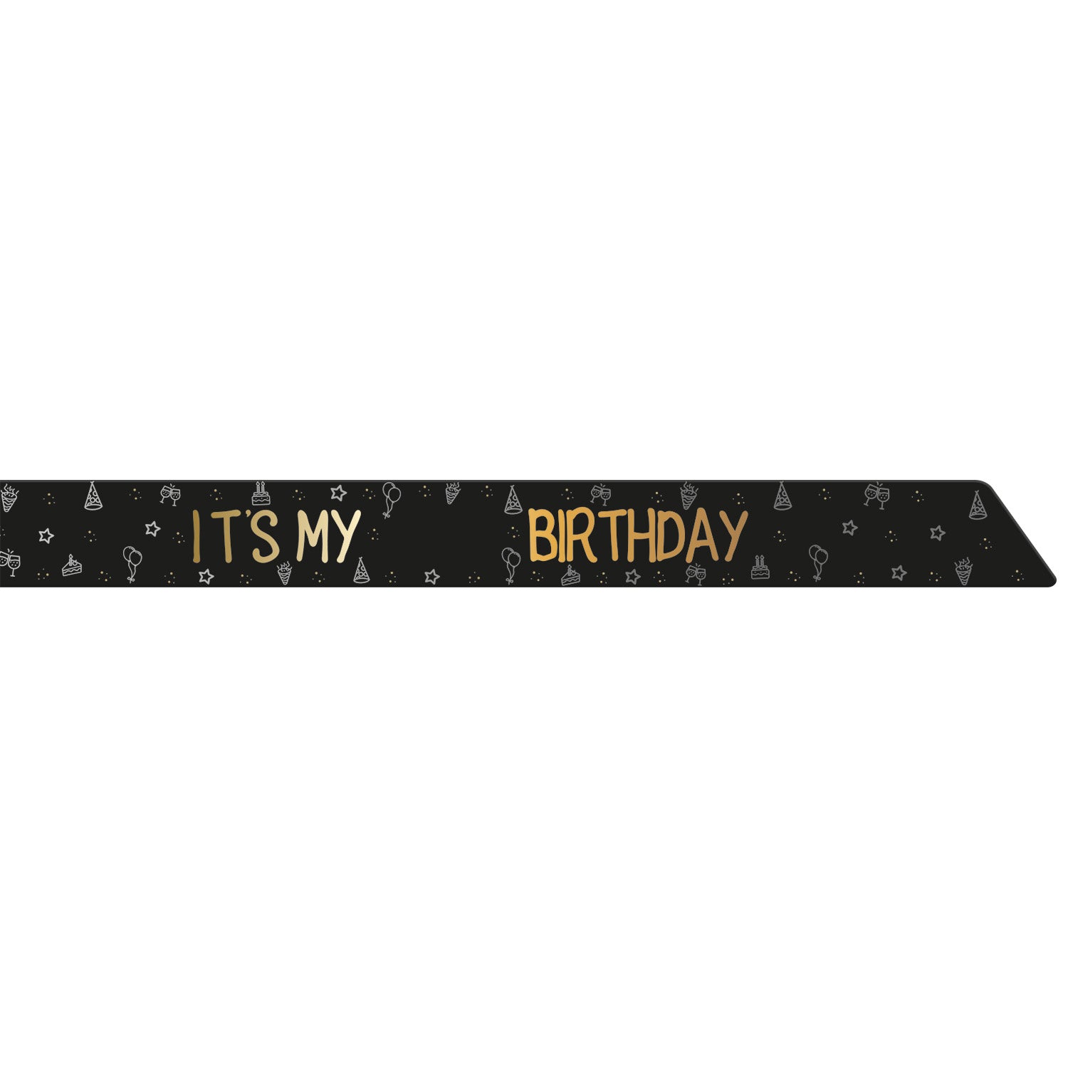 Det är min födelsedag! Sash - "DET ÄR MIN xx FÖDELSEDAG" - folie - Shining Glam. Innehåll: 1 sash. Används t.ex. vid följande fest/festtillfällen: Födelsedag. Festligt skärp till födelsedagsbarnet med texten "IT'S MY BIRTHDAY" i guldglänsande bokstäver. Däremellan finns utrymme där åldern kan klistras fast med de medföljande guldglänsande klistermärkena: 2x 0 till 9 på ca 5,5 cm höjd. Skärpet är helsvart och tryckt på ena sidan. Skärpet är ca 1,6 meter långt och 8 cm högt. Denna hängande dekoration tillhör kollektionen Shining Glam av