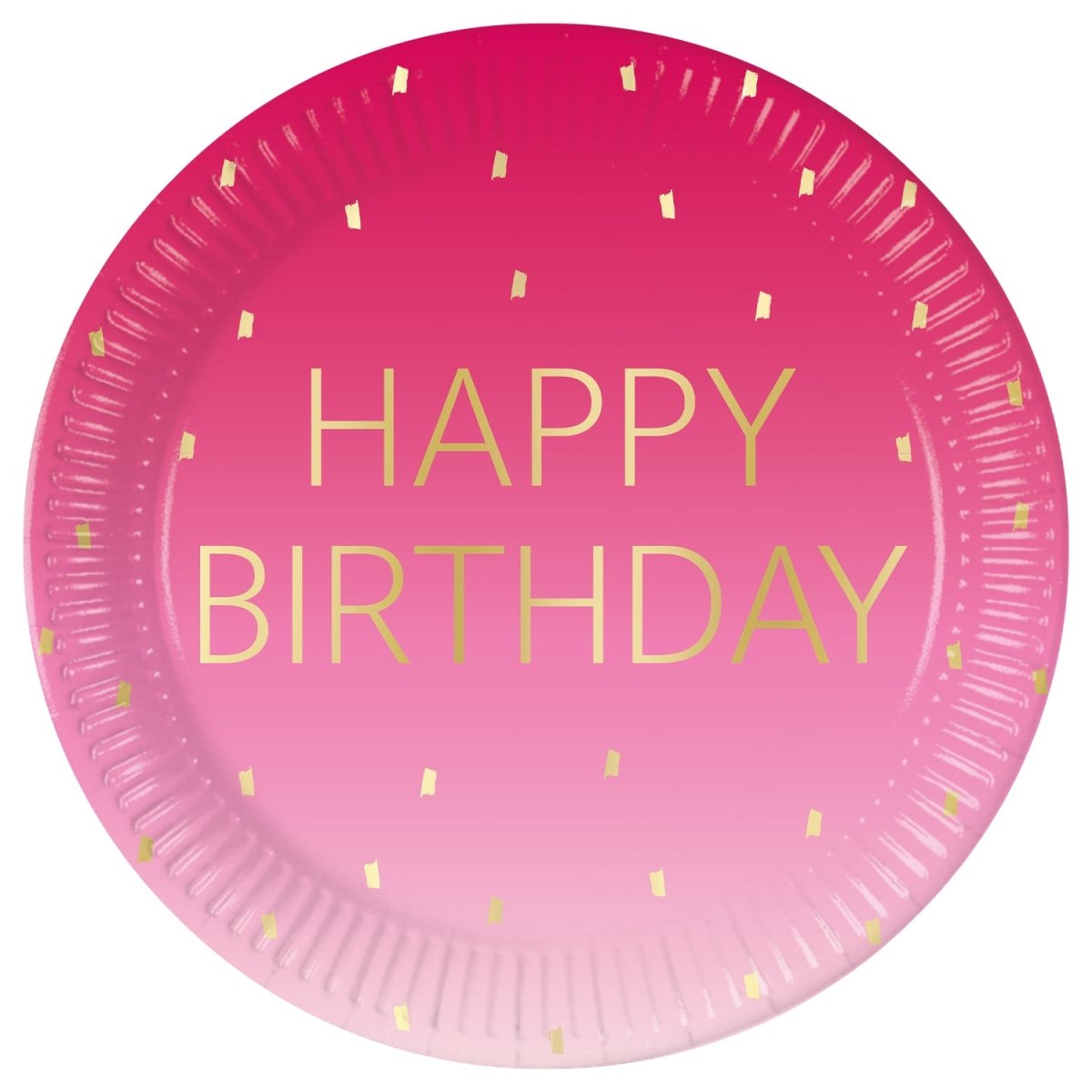 Happy Birthday-tallrikar Guld Rosa 23cm 8st