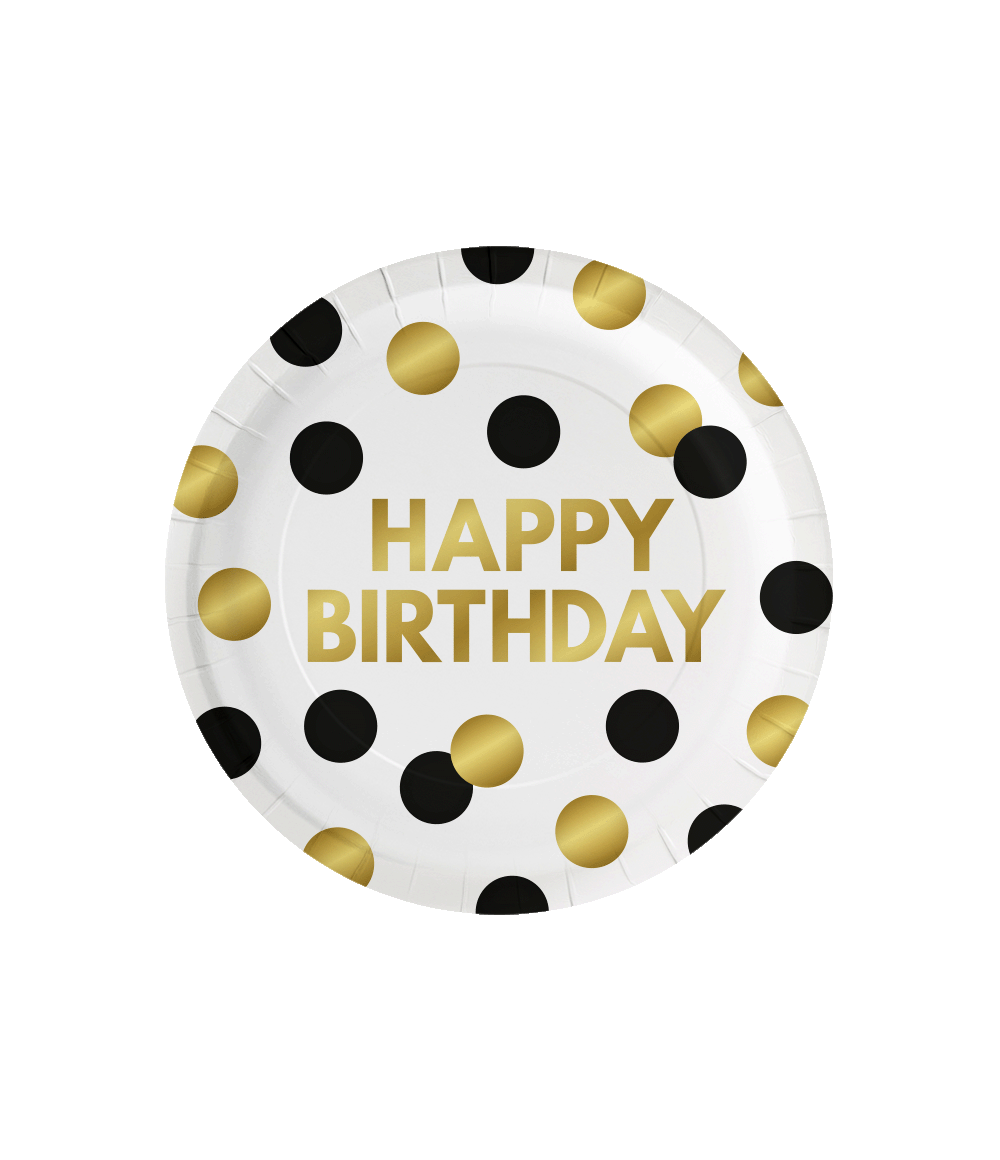 Happy Birthday Tallrikar Svart Guld Prickar 23cm 8st