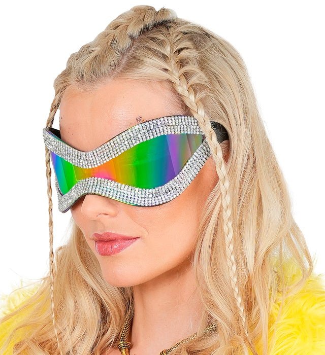 ÖVERDIMENSIONERADE GLASÖGON MED STRASS OCH LILA GLAS
