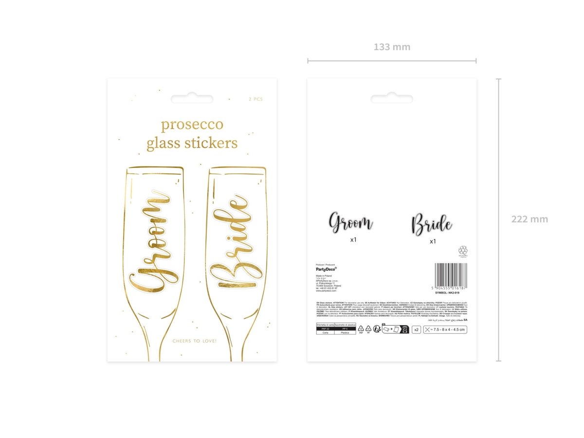 Klistermärken i guldglas Brudgum & Brud