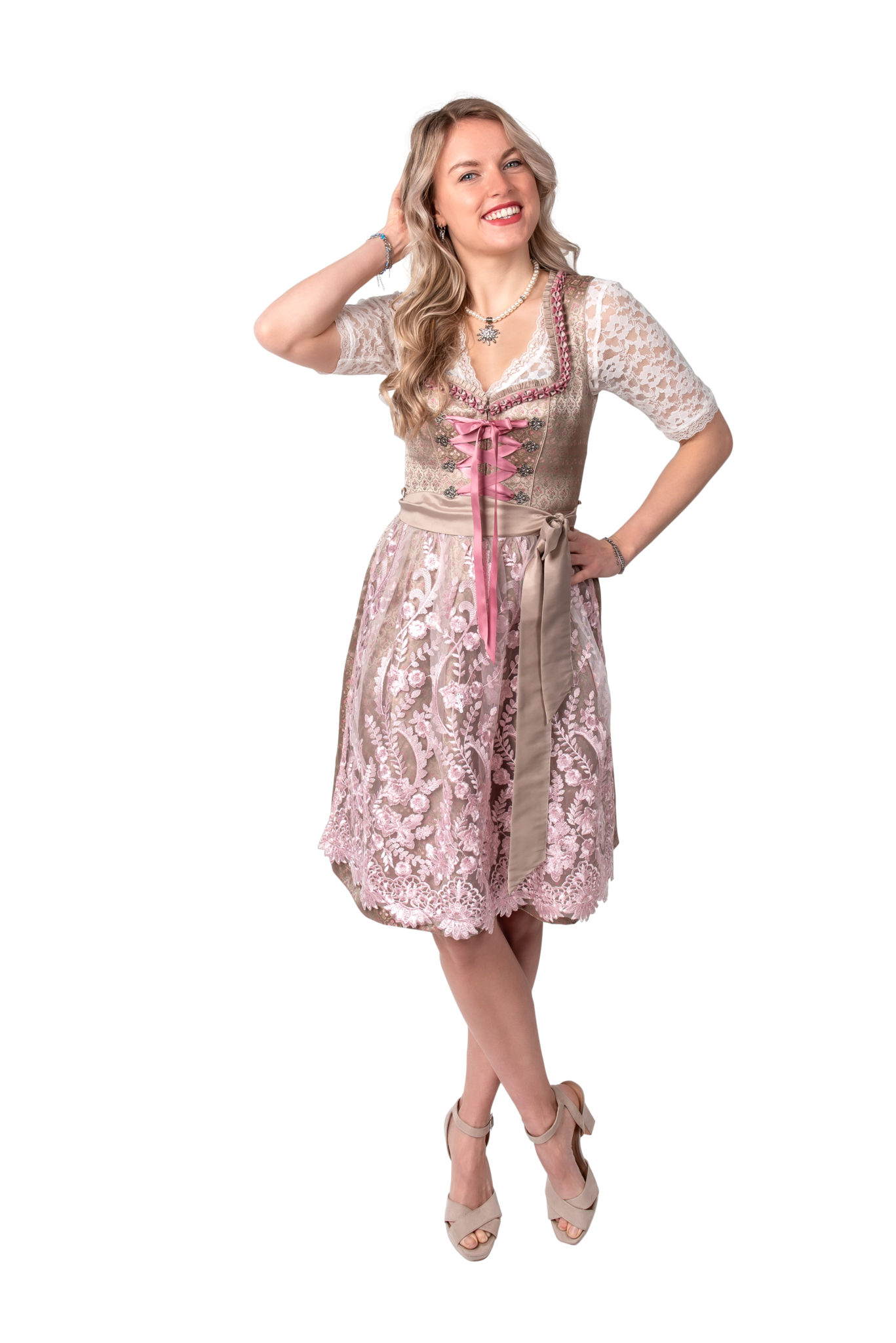 Guld Rosa Dirndlklänning Oktoberfest Ladies 2 delar