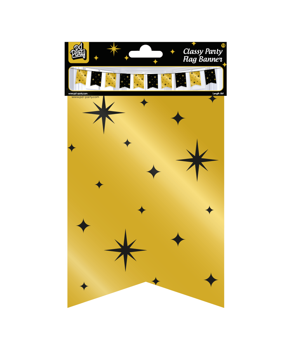 Guld Svart Garland Stjärnor 6m