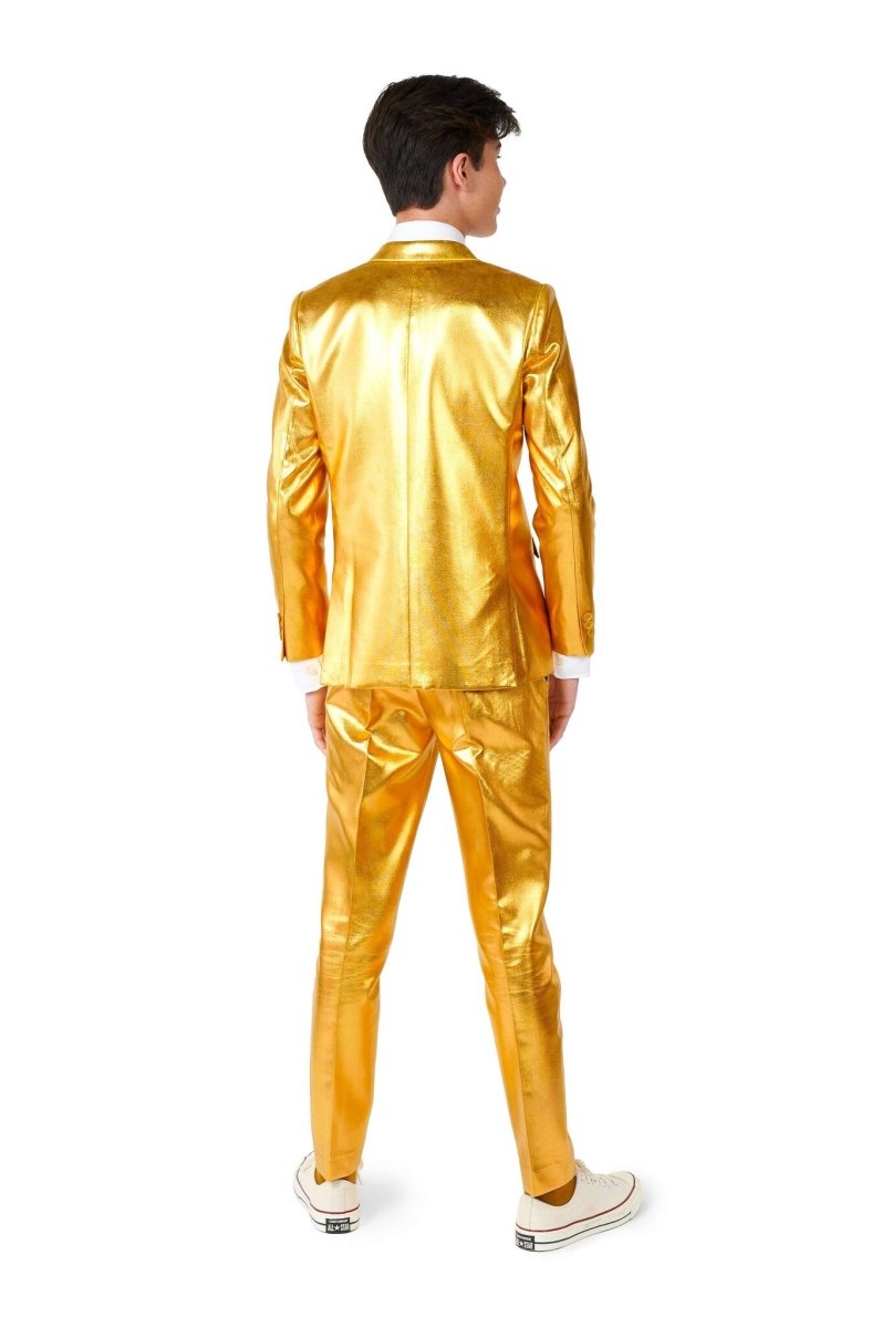 Om du är en riktig vinnare kommer denna fantastiska Groovy Gold-dräkt verkligen att göra dig gyllene. Bli en riktig "golden boy" och gå hela vägen med den här gyllene kostymen. Groovy Gold kommer att göra dig till nummer ett på nästa fest!