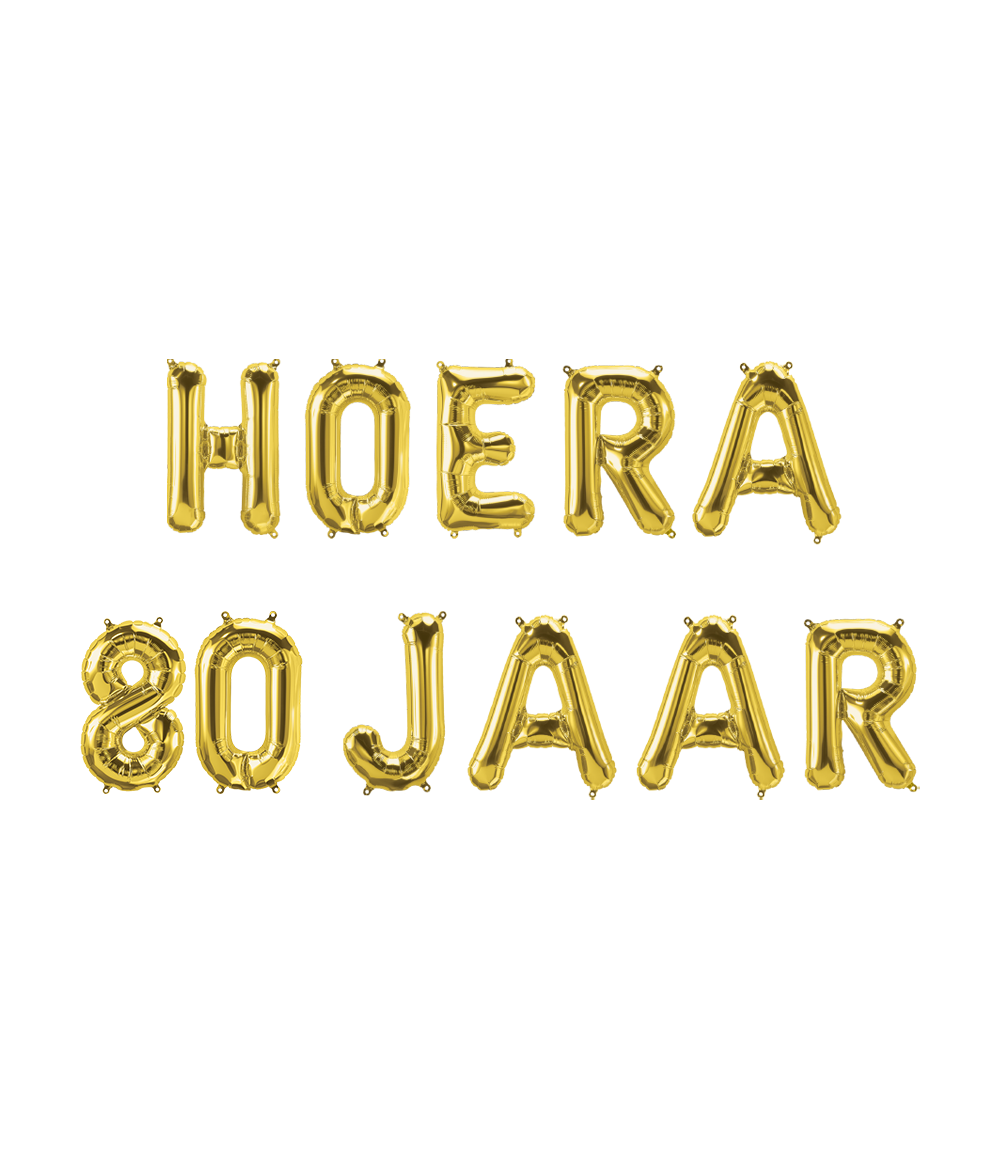 Gyllene ballonger Set 80 år Hurra 1,9 m