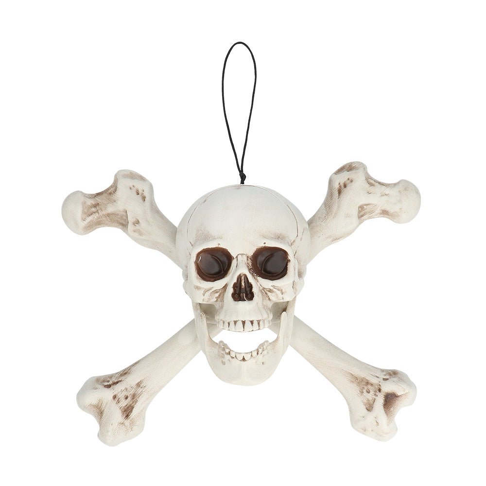 Komplettera din Halloween-dekoration med den här klassiska dödskallen med korslagda ben! Den tidlösa designen är perfekt för att skapa en kuslig piratatmosfär eller för att komplettera ett spöklikt tema. Dödskallen är lätt att fästa på dörrar, väggar eller tak. Rekommenderas starkt för Halloween och barnkalas med pirattema.