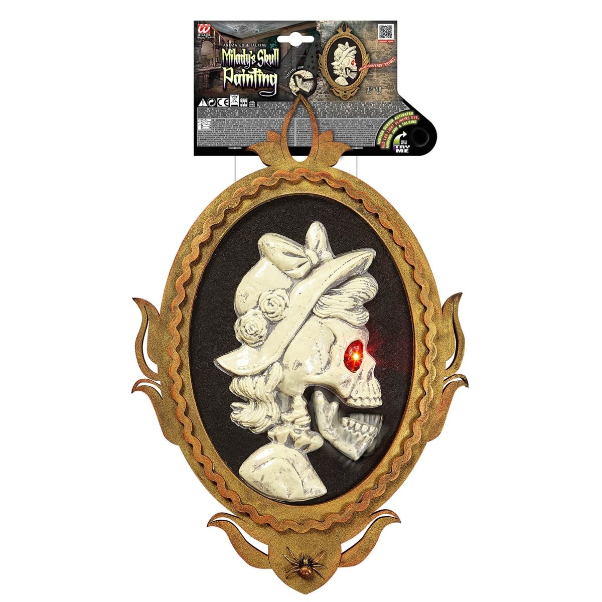 Halloween dörrskylt skelett dam med rörligt ljus och ljud 48cm