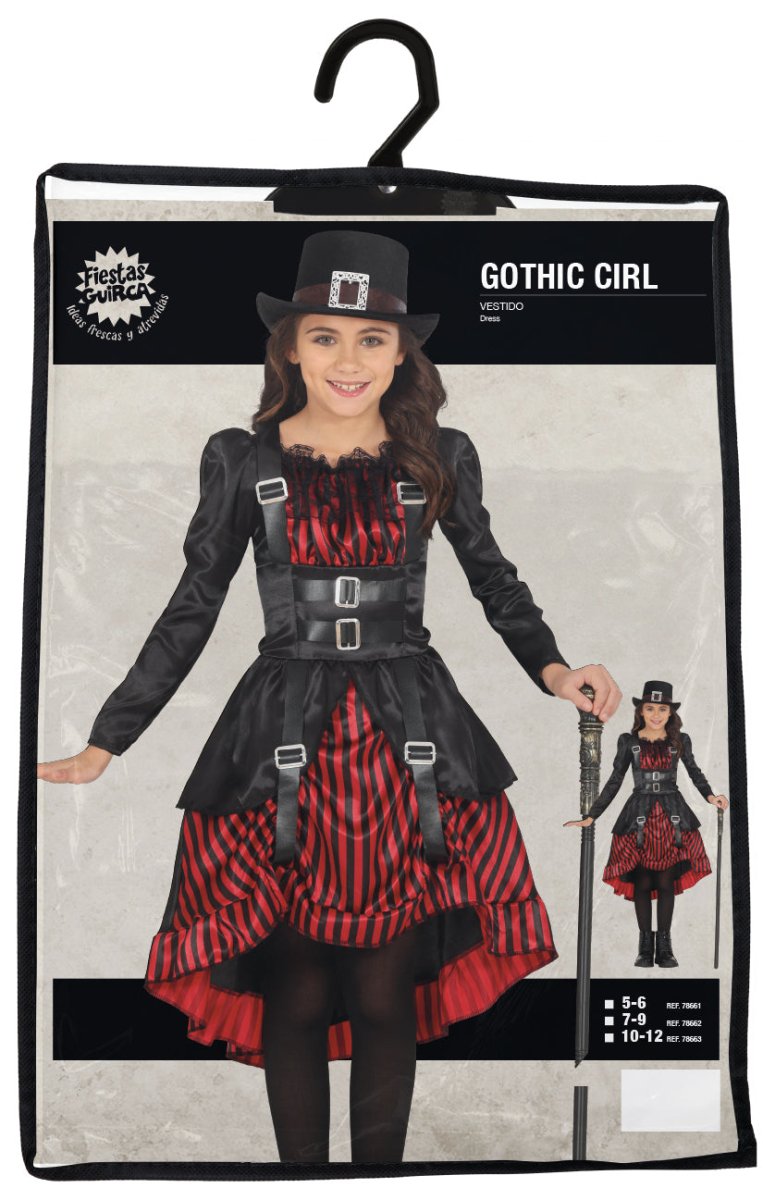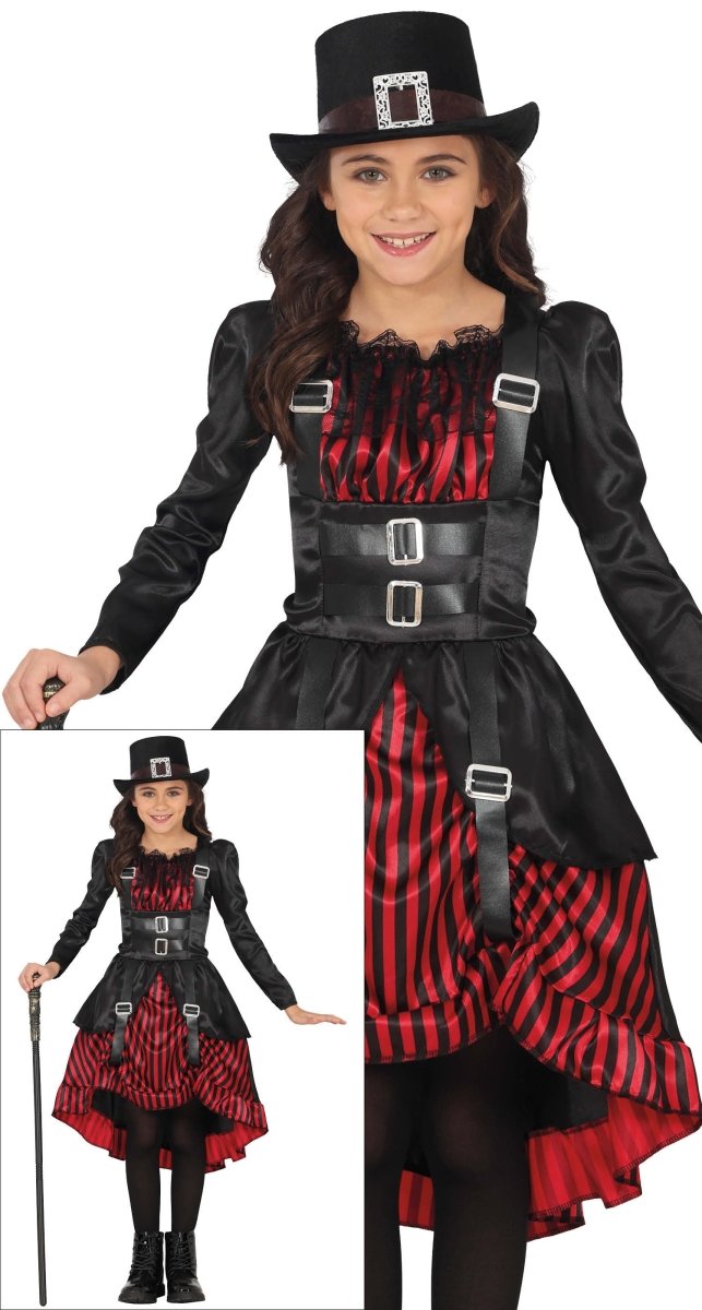 Halloween Klänning Röd Svart Flicka Gothic