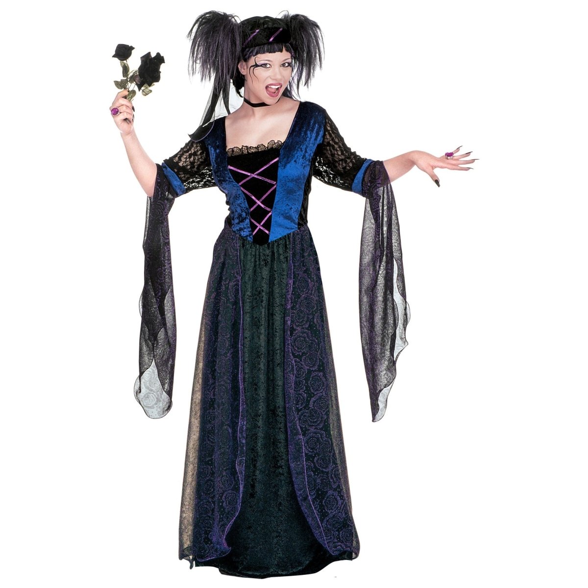 Innehåll: sammetsklänning med slöjor, huvudbonad med slöja