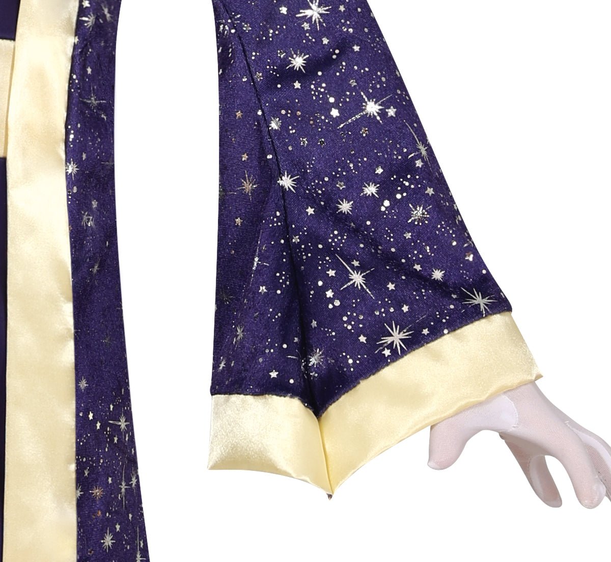 Få ditt barn att se magisk ut med denna trollkarlsdräkt för Halloween. Setet innehåller en klänning och en matchande hatt, båda tillverkade av polyester för komfort och hållbarhet. Perfekt för bus eller godis, Halloween-fester eller maskerader med ett magiskt tema.