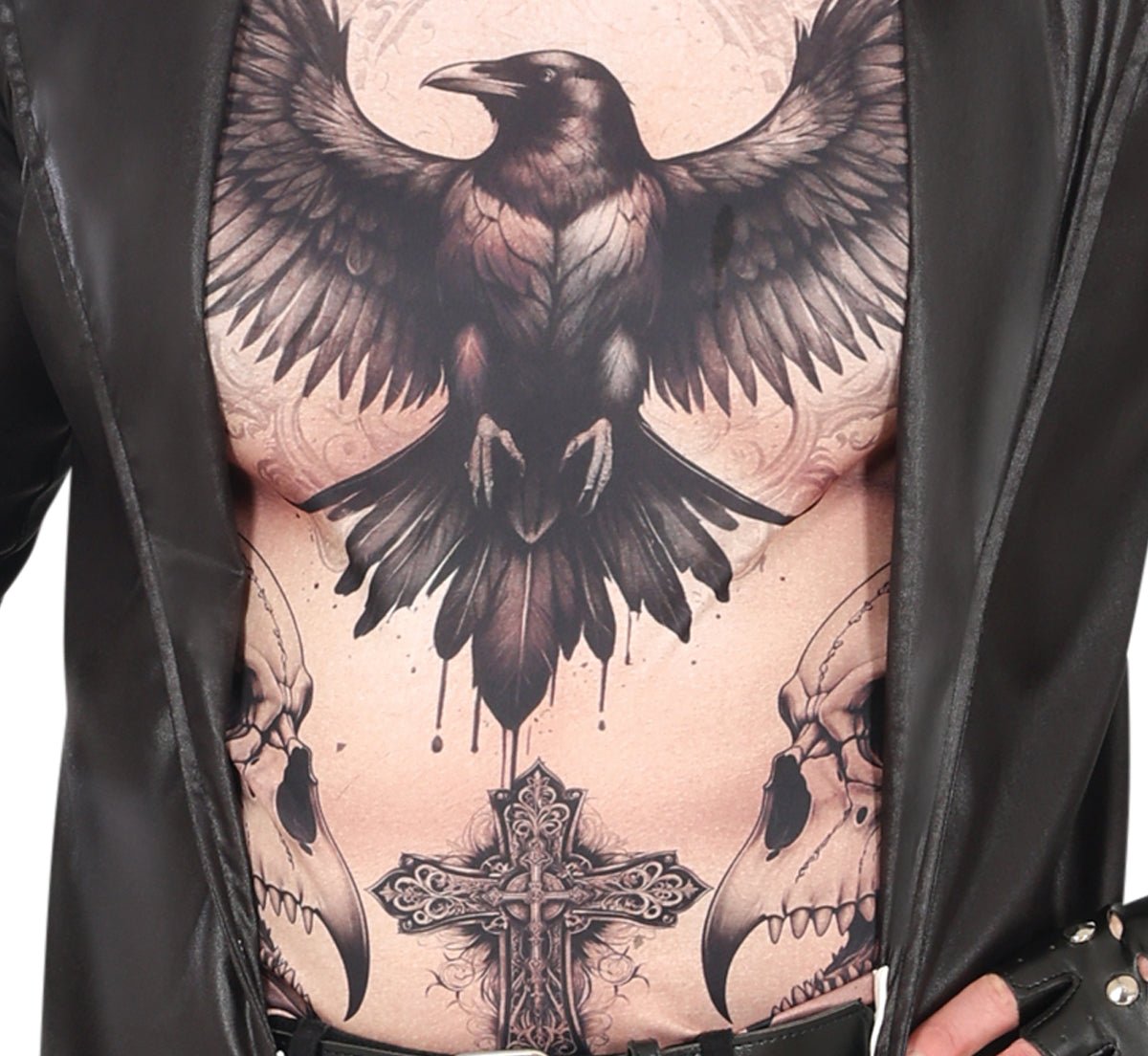 Lägg till mystik och tuffhet till din Halloween-look med denna gothic-dräkt för män. Setet innehåller en jacka och en skjorta, båda tillverkade av polyester för komfort och hållbarhet. Perfekt för Halloween-fester, maskerader eller temafester.