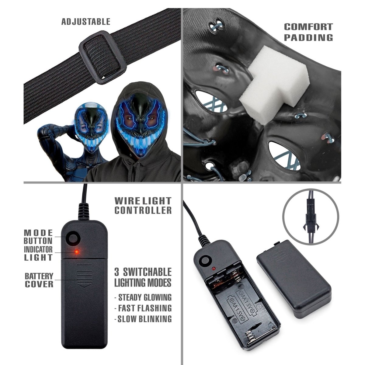 Halloween Mask Blått Monster Med Ljus
