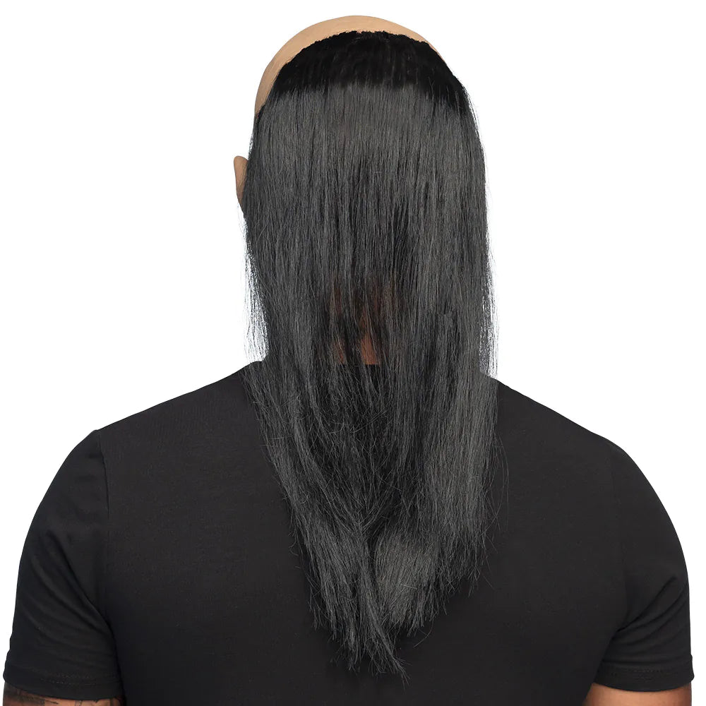Det missformade ansiktet, det snygga långa svarta håret, den kala pannan och en häxas signaturspetsiga näsa med vårta gör denna Creepy Butler monster latex huvudmask till det perfekta tillbehöret för att sätta ihop en speciell Halloween-outfit som kommer att ge alla gåshud. Perfekt för en läskig Halloween-fest eller Trick or Treat.