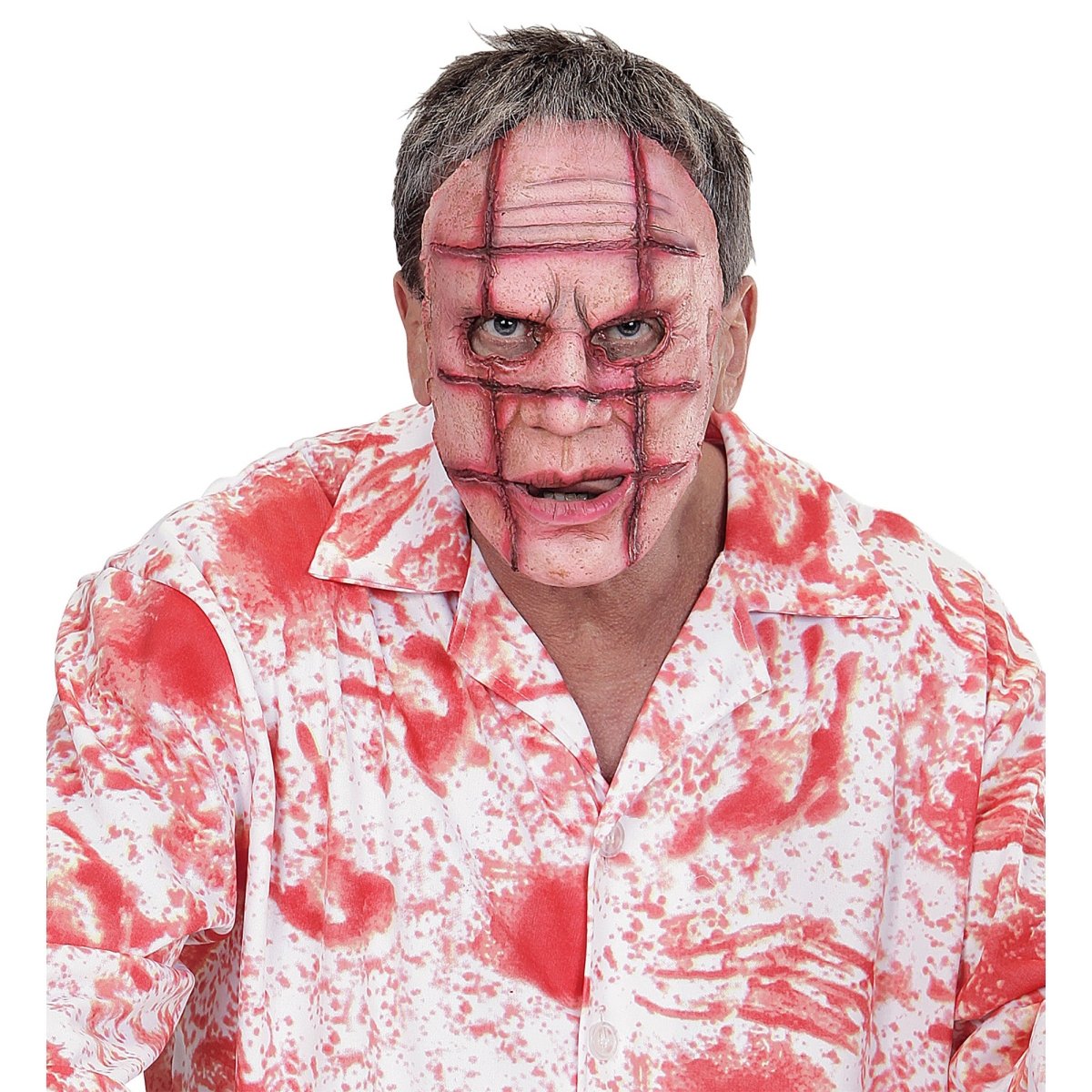 Skapa en skräckinjagande look med denna Halloween-mask Scarface med halvt ansikte. Masken i vitt med röda detaljer ger dig en omedelbar skräckinjagande look. Perfekt för Halloween-fester, temakvällar eller maskerader.