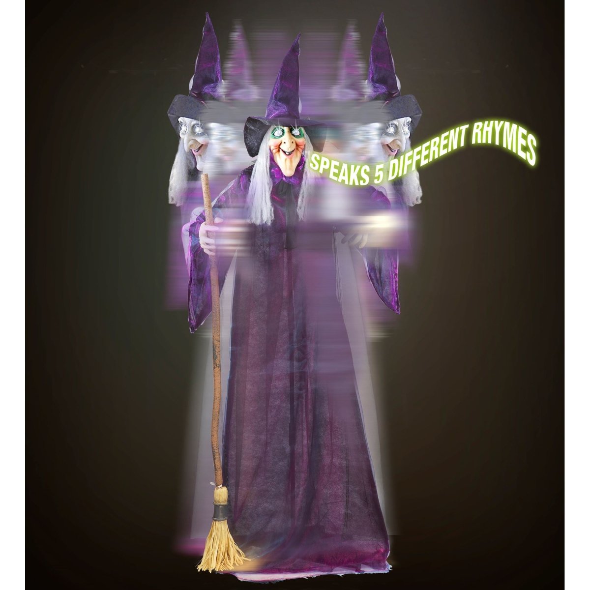 Innehåll:Häxa med ljus, ljud och rörelse, kvast och bas