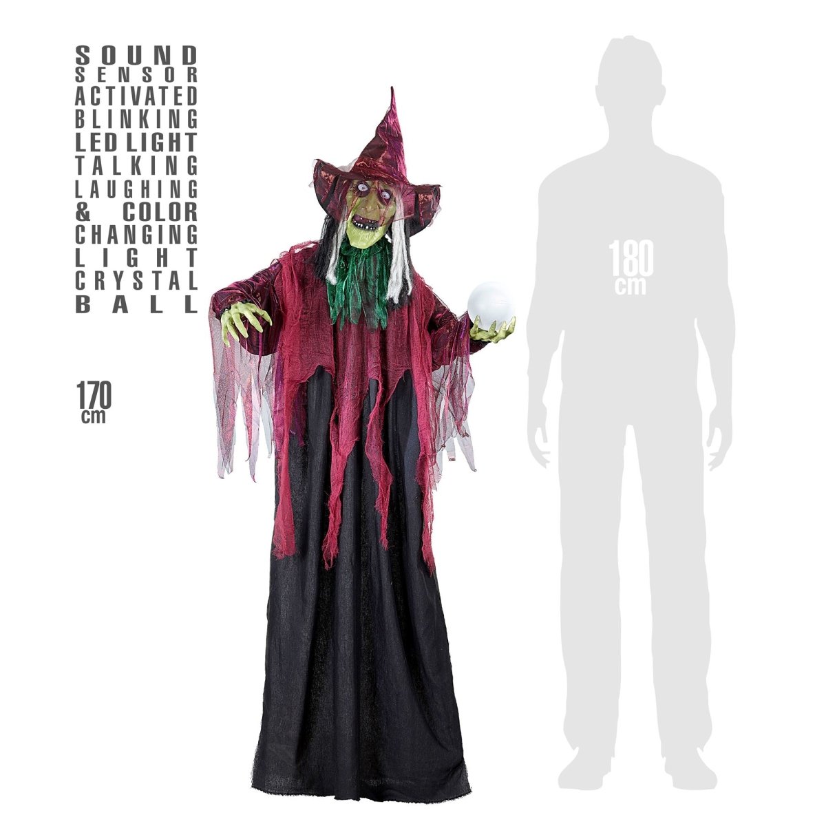 Innehåll:Rörlig häxa med ljud och ljus