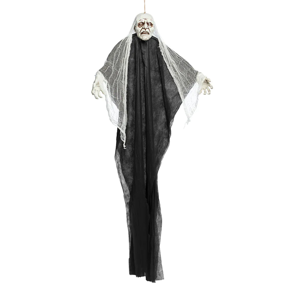 Lägg till en kuslig och ikonisk touch till dina Halloween-dekorationer med denna 1,7 meter långa Halloween-docka Light Ghost. Perfekt för en läskig atmosfär under Halloween hemma eller i ett spökhus. Producteigenschappen: Innehåll:Halloween-dekoration Ljusspöke Storlek: 1,70 meter Material: 60% PET, 25% polypropylen, 15% bomullsfiber Optioner: Ljus-, ljud- och ljudsensor Batterier: 3 AG13/LR44-batterier ingår