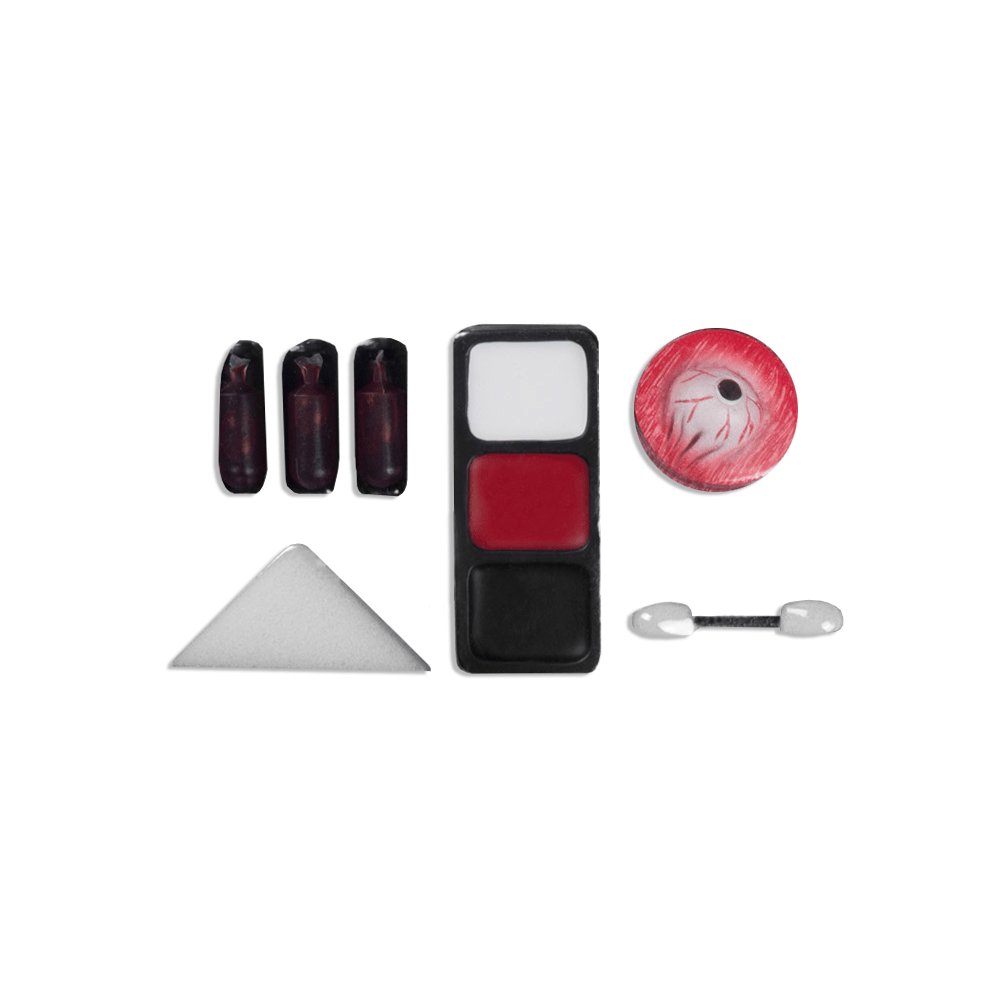 Förpackningens innehåll: Make-up kit Zombie 3 fejkblodkapslar, latexsår, svamp och applikator